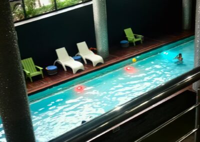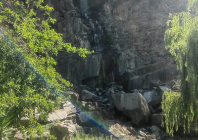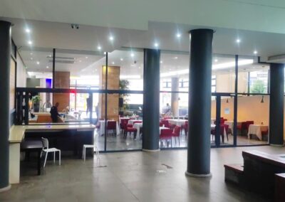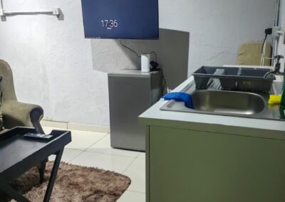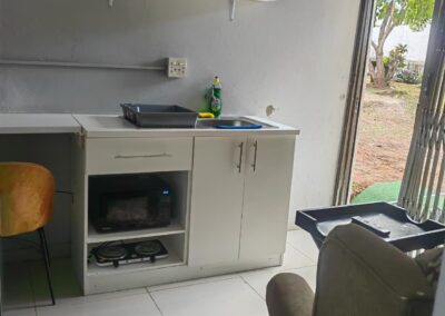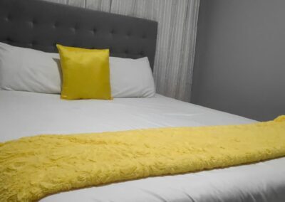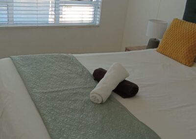 The Four-bedroom house can sleep 15 people comfortably, has a living room with a sofa bed, bedroom 1 has a queen bed and a twin bed, bedroom 3 has 2 queen beds and a twin bed, bedroom 5 has 3 twin beds and bedroom 6 has 1 queen bed and a twin bed. There is a flat screen TV in the lounge. Kitchen is fully equipped for self-catering. The facility is fully Wi-Fi enabled.