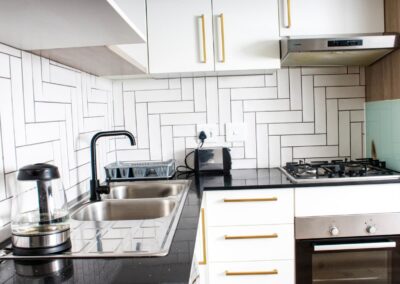The Three -bedroom town house can sleep 10 people comfortably, bedroom 1 two twin beds, bedroom 3 has 2 queen beds and a 2 twin beds, bedroom 3 has 2 twin beds and 2 queen beds . There is a flat screen TV in the lounge. Kitchen is fully equipped for self-catering.The facility is fully Wi-Fi enabled.